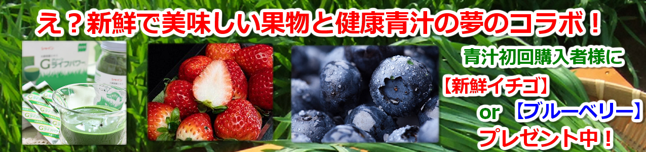創業40年大麦若葉の元祖青汁『麦緑素』(国内初の大麦若葉の青汁です!)購入金額全国1位の千葉市のイチゴ🍓(令和2年全国家計調査購入金額・数量)ついに夢のコラボ企画キャンペーン!!初回購入者の方に、約3,000円相当のイチゴかブルーベリーを...